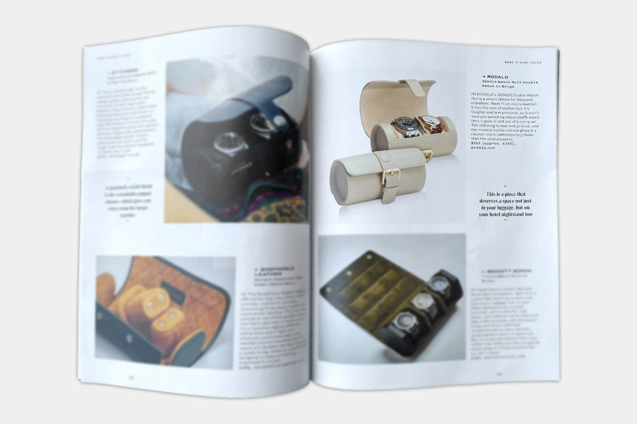 Le magazine met également en avant la MODALO GENIUS Double Watch Roll en Beige
